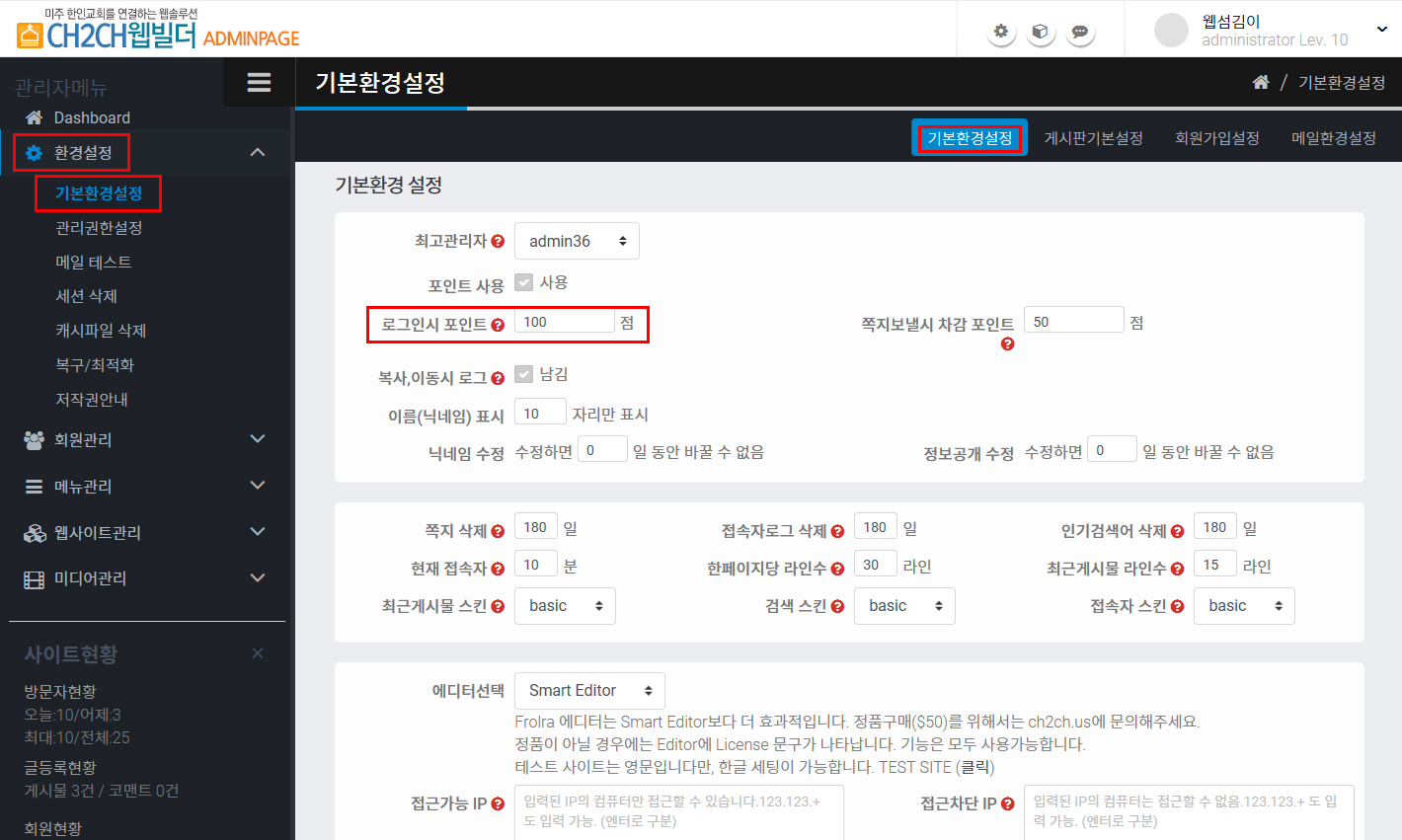 즉, 환경설정 > 기본환경설정 과 같이 두꺼운 글씨로 나타낸 것은 모두 관리자모드에서의 위치를 말합니다.