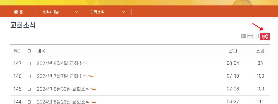 클릭하게 되면 해당 서브메뉴(게시판)에 해당되는 각종 세팅을 다룰 수 있는 관리화면으로 들어가게됩니다.