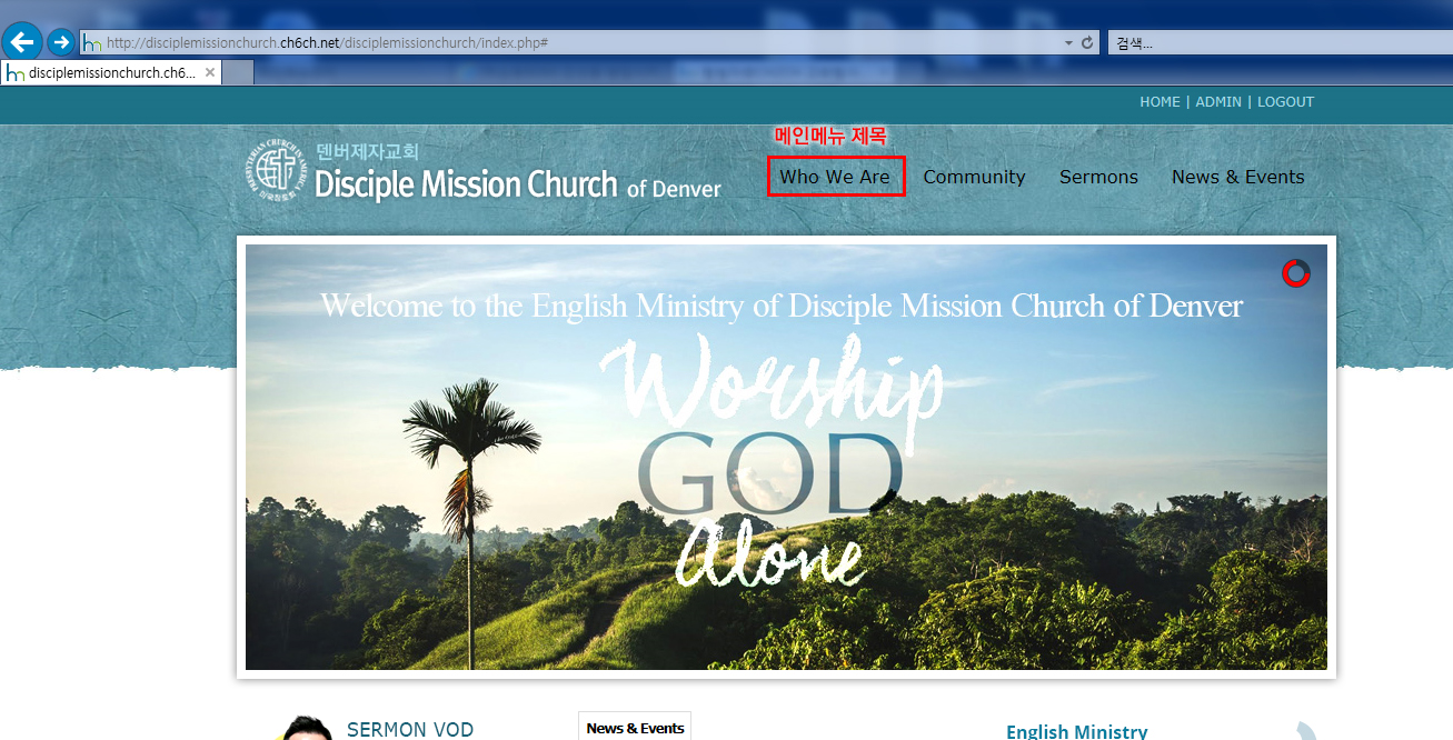 보통 메인메뉴는 이미지로 처리되기도 하지만 유지보수를 원활하게 하기위해 메인메뉴를 TEXT로 제작했을 경우, 관리자가 메뉴 이름 등을 변경할 수 있습니다.