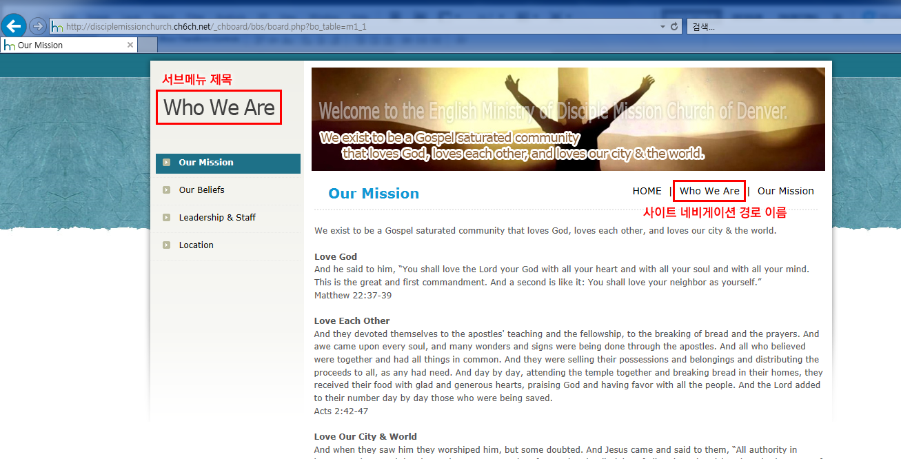 해당회원에게만 Who We Are이라는 웹사이트 서브메뉴가 나타나게 됩니다.