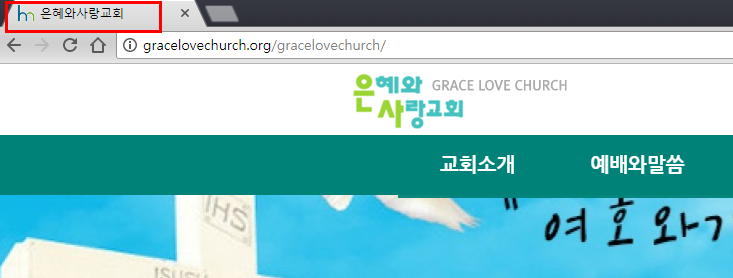 *홈피제목은 아래 화면 빨간 박스처리된 부분처럼 처음 홈페이지가 로딩될 때 화면 상단 타이틀바, 탭바에 나타나는 인사말입니다.