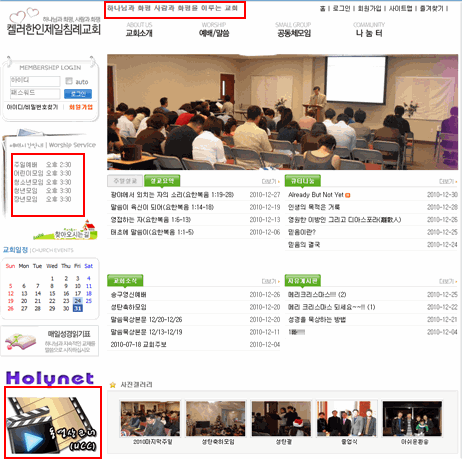 아래 사이트는 3개의 사용자 공간이 신청되어 사용되고 있습니다. 붉은 테두리가 사용자 공간영역입니다.