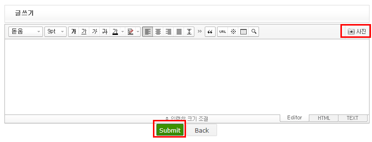 - 사진은 공간만 만들어서 실제로는 위의 설명처럼 글쓰기의 "그림등록"아이콘을 이용합니다.
