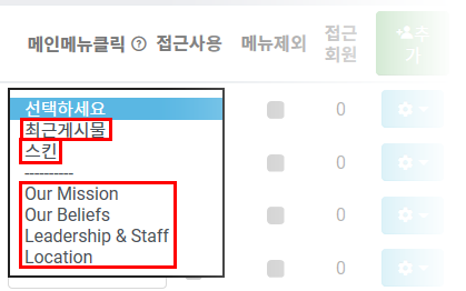 "메인메뉴클릭"이라는 새로운 옵션이 생긴 것을 볼 수 있습니다.