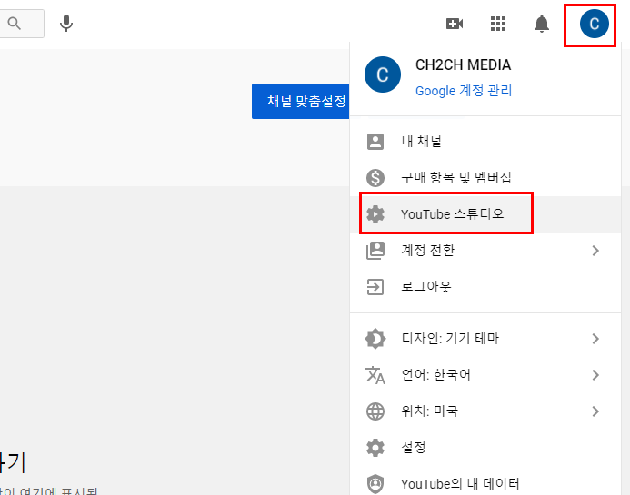 우선 youtube로 가시고, 아이콘을 클릭해서 youtube 스튜디오로 갑니다.