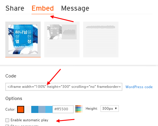 사운드클라우드(https://soundcloud.com)는 오디오를 전문적으로 공유하는 서비스입니다. 임배드코드를 받으셔서 게시판에 넣는 방법을 소개합니다.